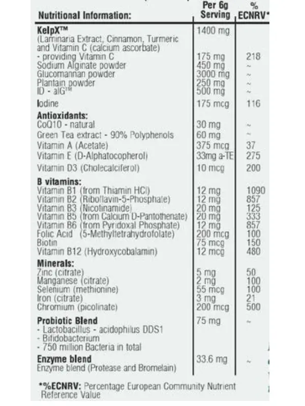 Mix 6g daily into a smoothie, juice or in yoghurt, stir and drink/eat immediately. Kelp Me Advance has a slightly more earthy taste and takes longer to set as a gel, for best results it is recommended you drink Kelp Me Advance 20-30 minutes before mealtimes with water or (apple) juice.