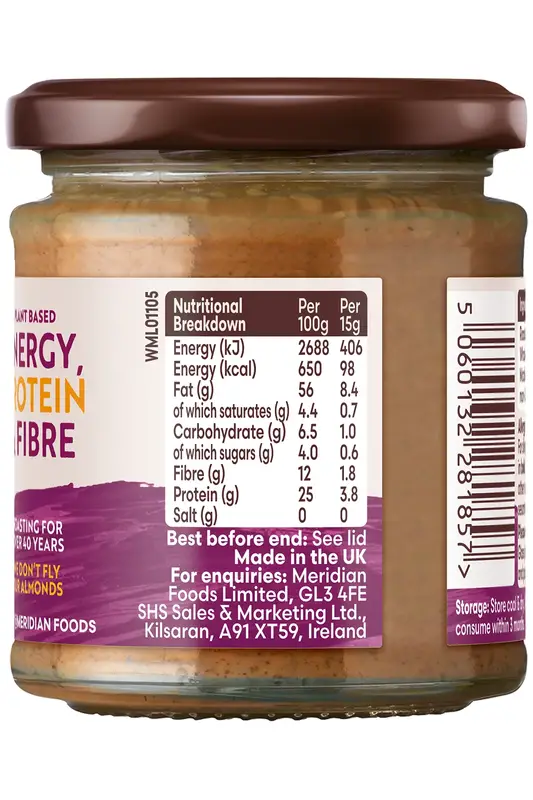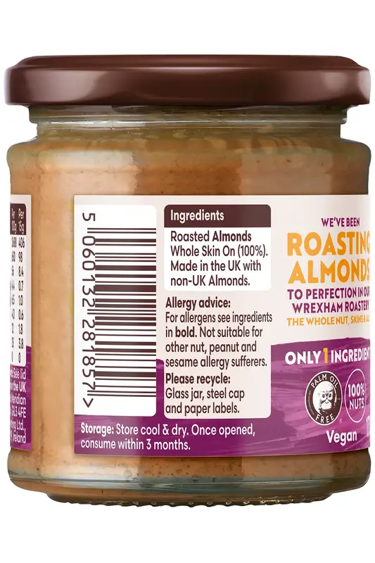 Our crunchy almond butter is high in vitamin E and fibre, low in saturated fat and with each almond containing around 20% protein is perfect for maintaining a healthy diet. Made with 100% nuts, we roast the whole almond in their natural skins and then crush them for a perfect crunchy texture.