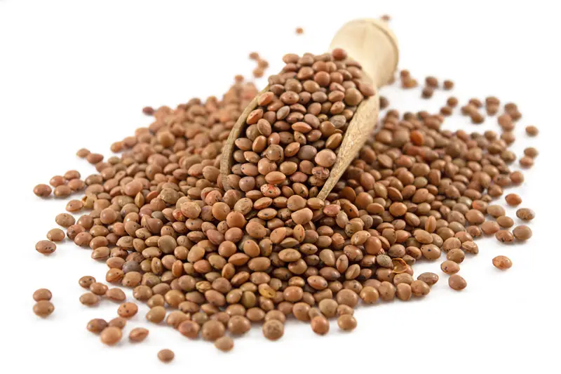 Brown whole lentils.