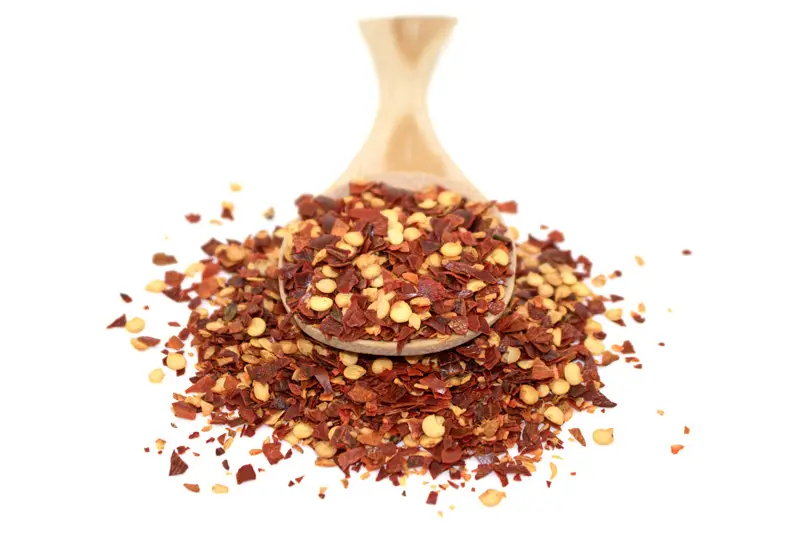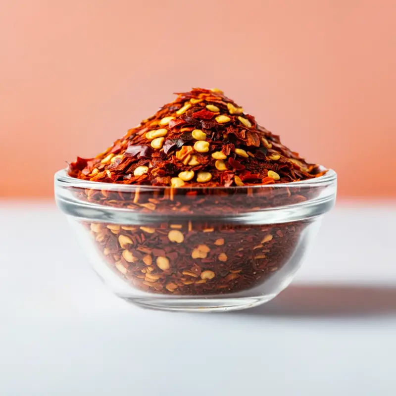 Pure and natural dried red chilli flakes and seeds.