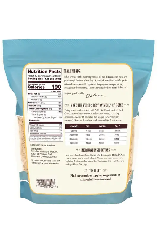 Old Fashioned Rolled Oats make a delicious, chewy, wholesome hot cereal that will give you lasting energy throughout the morning. Also a great choice for classic oatmeal raisin cookies, homemade granola, and oatmeal bread.
