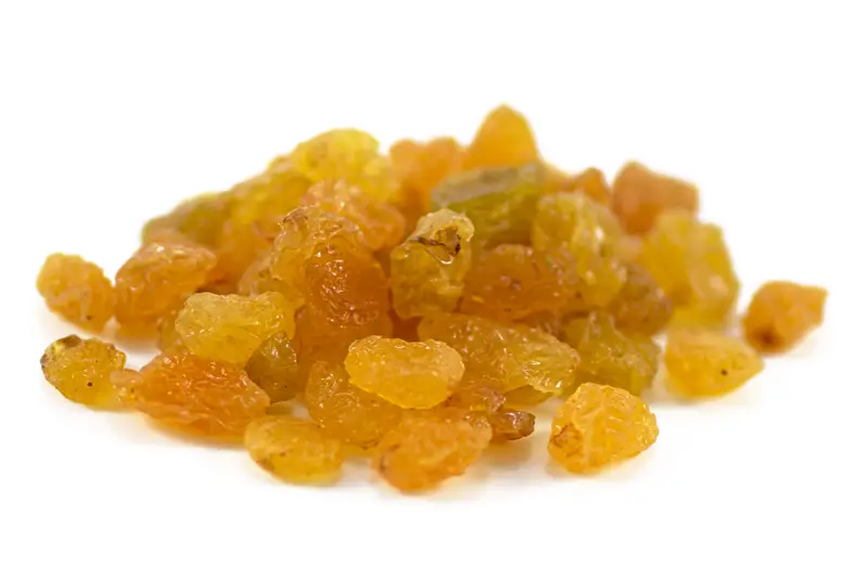 Golden Raisins 99.7-99.5%, Sunflower Oil 0.3-0.5%.