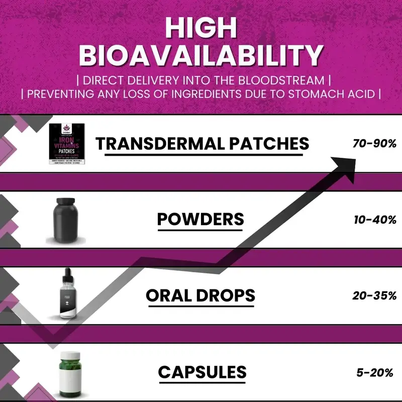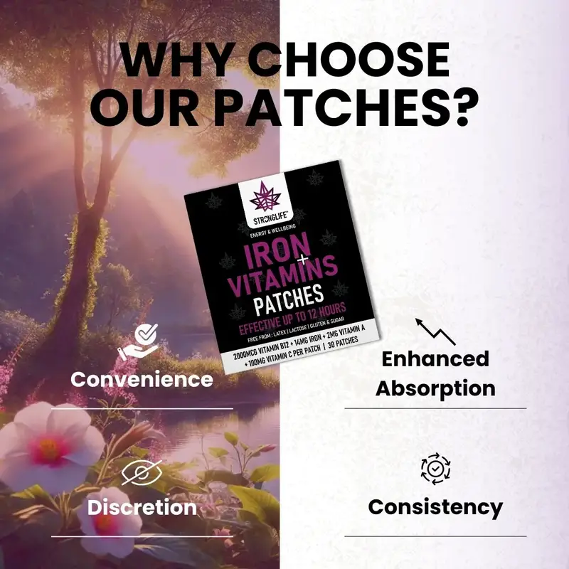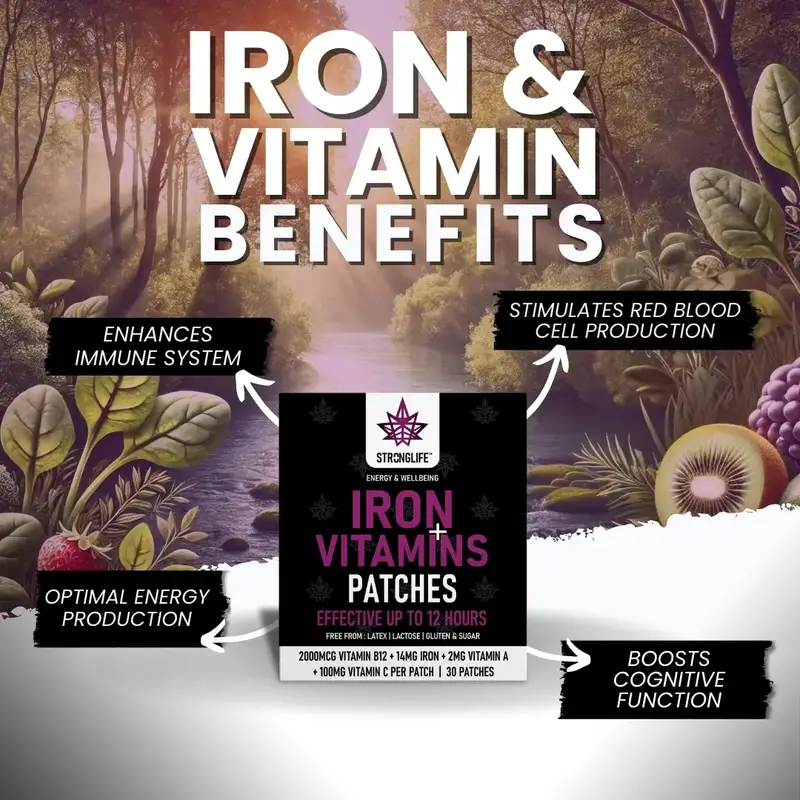 Food supplements should not be used as a substitute for a varied diet and healthy lifestyle. Do not exceed the recommended usage. Keep out of reach of children. If you have a medical condition (e.g. iron-overload disorders such as haemochromatosis, liver disease), or are pregnant or breastfeeding, consult a qualified healthcare professional before use. Remove patch if skin irritation occurs.