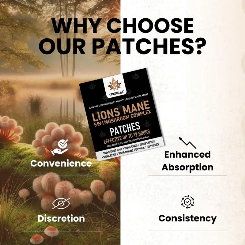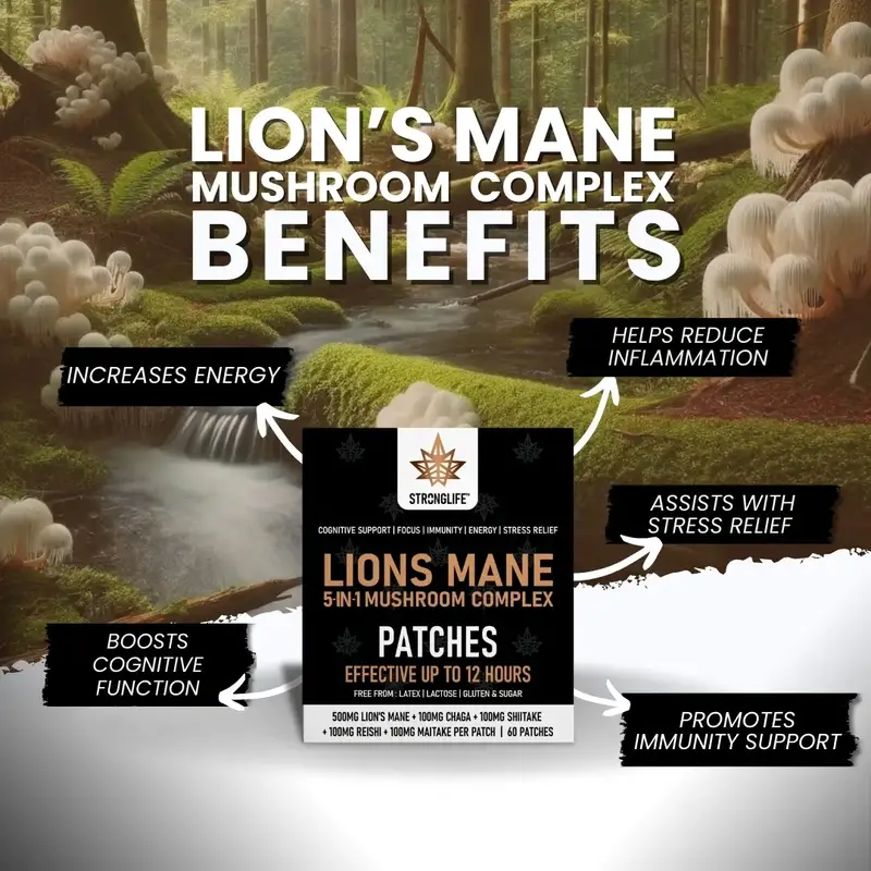 Lion's Mane (500mg), Chaga (100mg), Shiitake (100mg), Reishi (100mg), Maitake (100mg).
