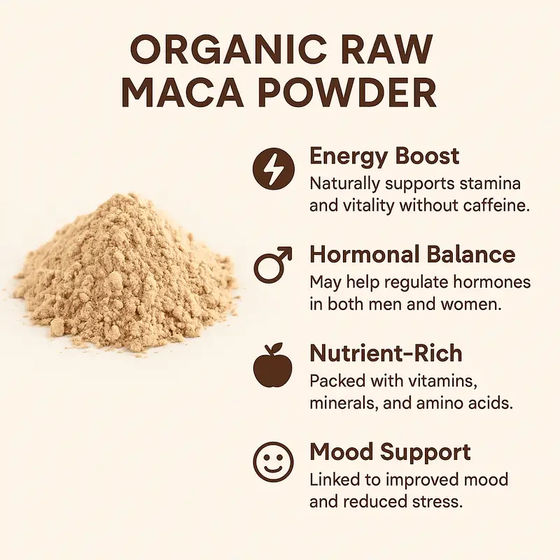 Organic Maca Powder (Lepidium meyenii). Organically grown in Peru.