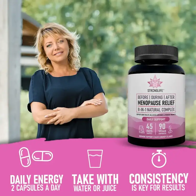 Red Clover (18000mg equivalent), Ashwagandha KSM-66 (2400mg equivalent), Maca Root (2000mg equivalent), Ginseng Root (2000mg equivalent), Sage (200mg), Magnesium (200mg, 53% NRV), Vitamin B6 (25mg, 1786% NRV), Vitamin D3 (100ug, 400% NRV).