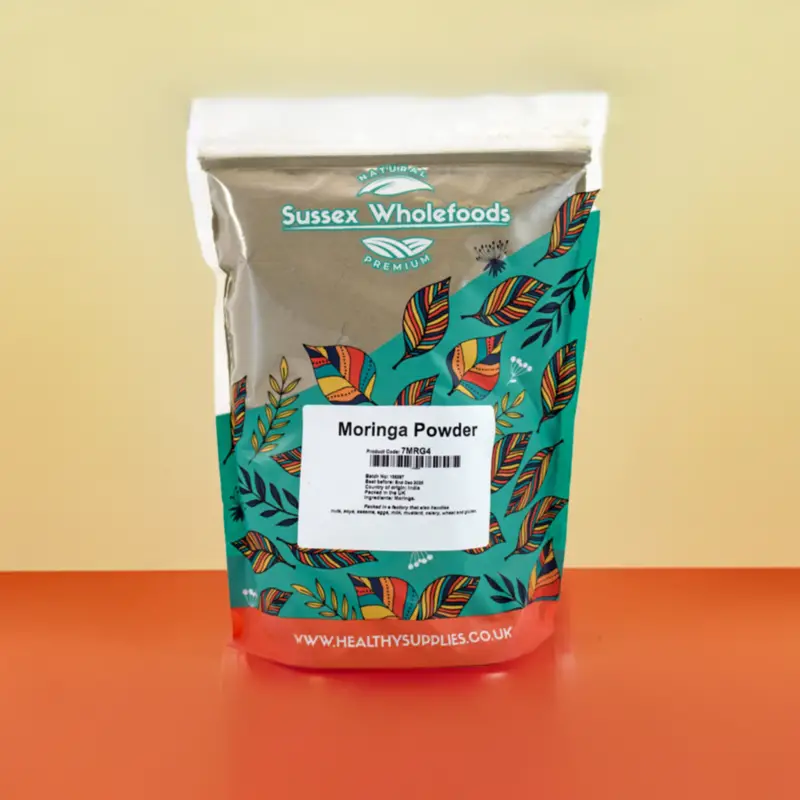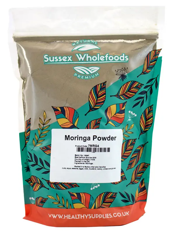 This superfood is rich in essential nutrients, including vitamins A, C, and E, calcium, potassium, and protein. Perfect for smoothies, teas, or sprinkled over your favourite dishes, Moringa Powder supports energy levels, immune function, and overall wellness. Elevate your daily nutrition with this versatile supplement. Moringa. The last batch packed at our facility in Sussex, UK