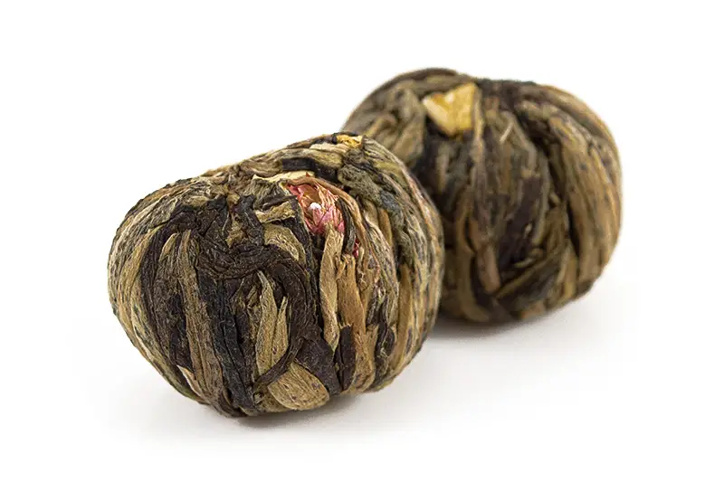 Place 1 tea ball into a 3-4 cup glass teapot and add freshly boiled water. Allow the tea to brew for at least 5 minutes. Initially the tea ball will float but as it loses the trapped air during the steeping process it will sink if you have used boiling water. Once the tea ball has opened to its full potential the tea can be consumed.