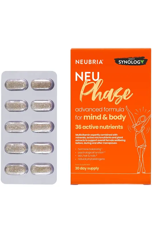 Neu Phase provides support for women throughout menopause, offering key nutrients to balance hormones and enhance mental and physical health.
