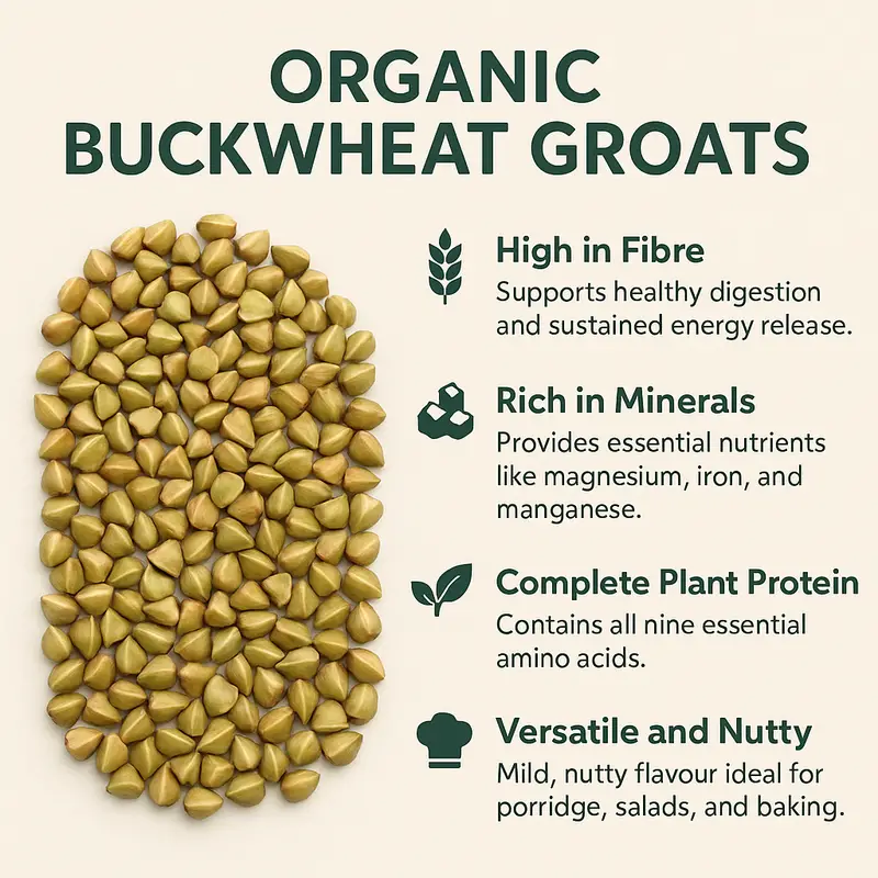 Buckwheat is a pseudo-cereal and is used as a wheat free grain alternative. On its own it can be eaten like rice or added to stews and salads to pad them out. Buckwheat can be toasted to make kasha for a more nutty flavour and crunchy texture. Buckwheat is also ground down and used as a wheat free flour.