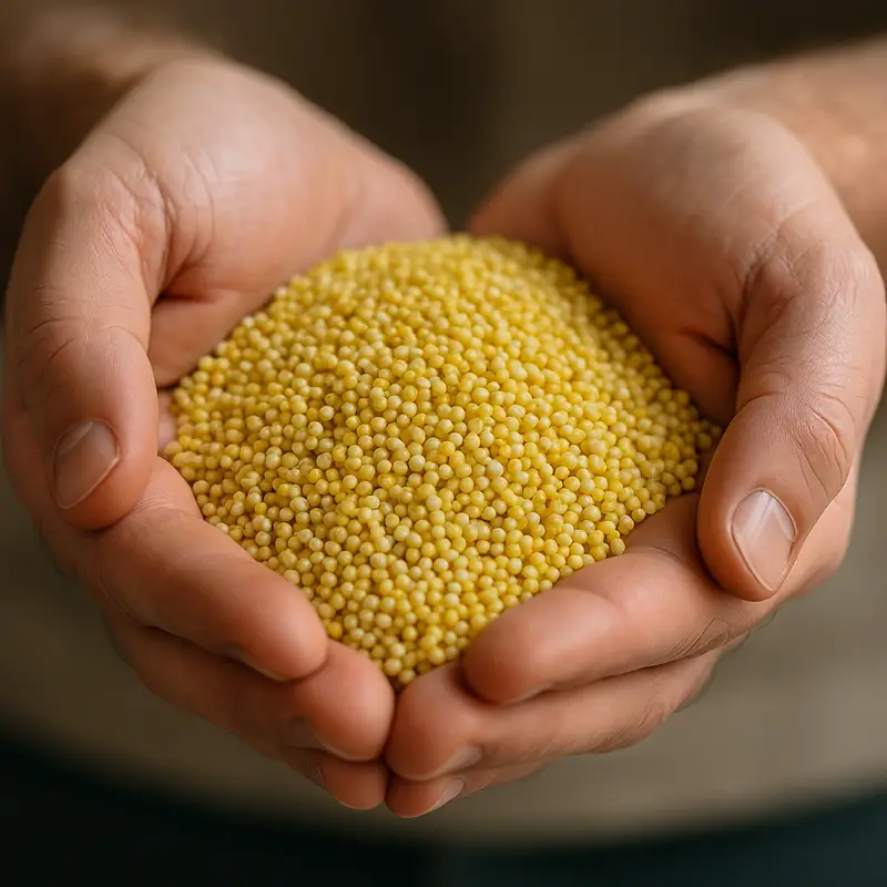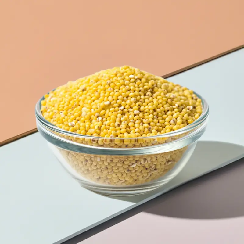 Millet is a very tiny, spherical grain which is golden yellow coloured and very subtly sweet.