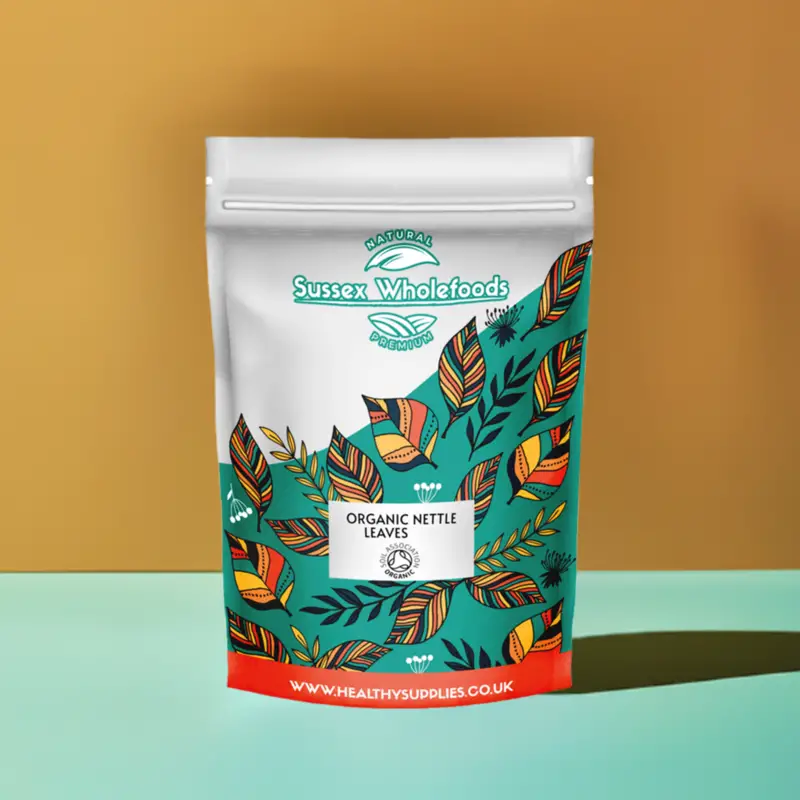 Certified organic dried nettle leaves (Urtica dioica), whole cut. Suitable for use as a herbal tea or in cooking. Suitable for vegans and vegetarians.