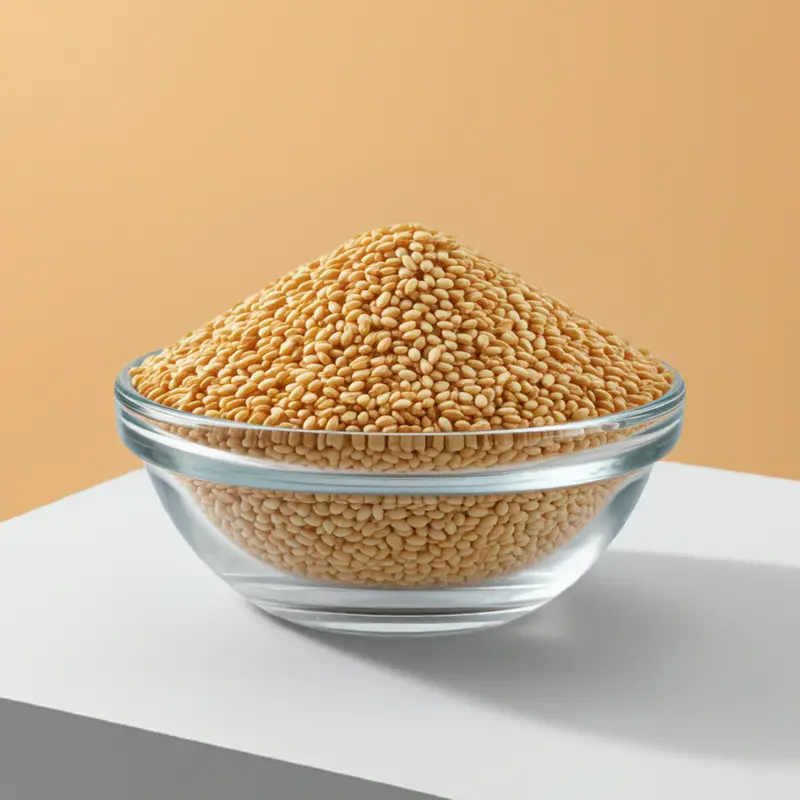 Unhulled toasted white sesame seeds.