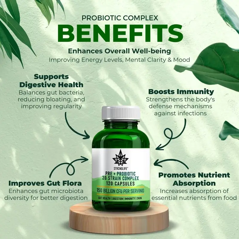 Prebiotic & Probiotic Complex Vegan Capsules - Multi-Strain Formula