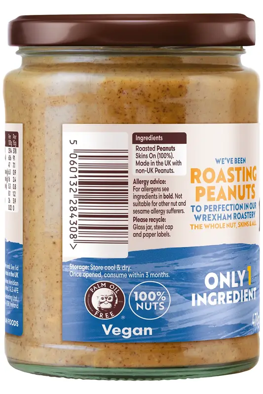Our smooth peanut butter is a good source of energy, crammed with 100% peanuts. Peanuts are naturally a source of protein (25% of their calories come from protein) and are perfect for maintaining a healthy diet.
