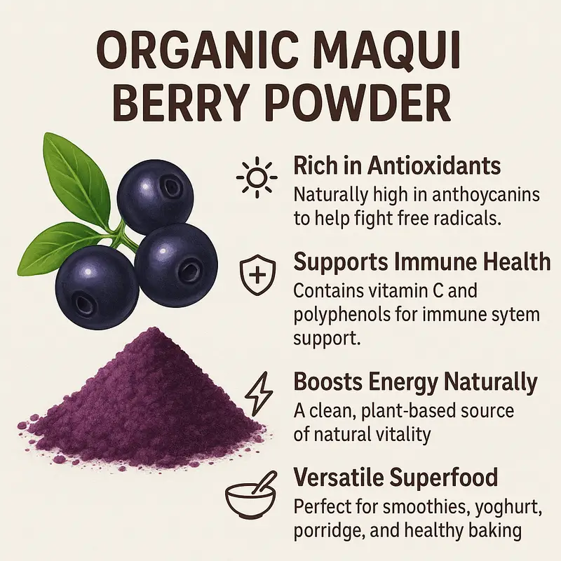 This product is temporarily out of stock. Add To Wishlist Product Code: 7MAQ1 Email me when this product is back in stock Best Before End Feb 2026 Organic Maqui Berry Powder - Freeze-Dried Superfood for Antioxidant Support