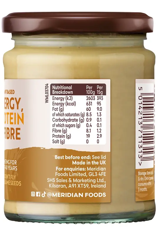 Suitable for vegan and vegetarian diets, this tahini contains no added sugar or salt.