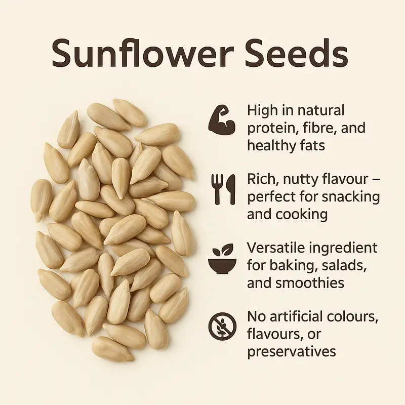 Discover the natural goodness of our premium Sunflower Seeds, a delicious and nutritious choice for everyday snacking, baking, and cooking. Naturally rich in protein, healthy fats, and dietary fibre, these versatile seeds add a satisfying crunch and nutty flavour to a wide range of dishes.