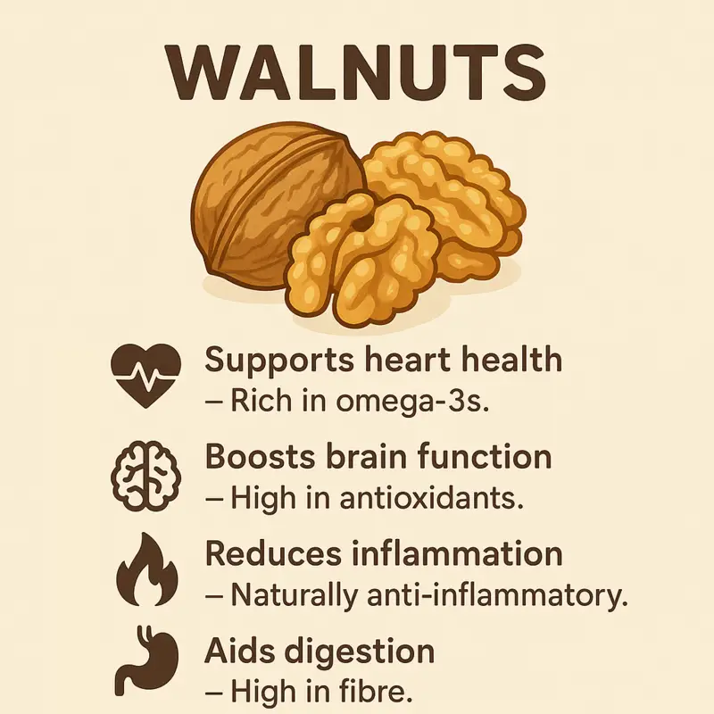 Perfect eaten on their own or used in cooking, walnuts are a wholesome pantry staple. Toast them for extra crunch, blend them into sauces, or sprinkle over breakfast for a satisfying and nourishing boost.