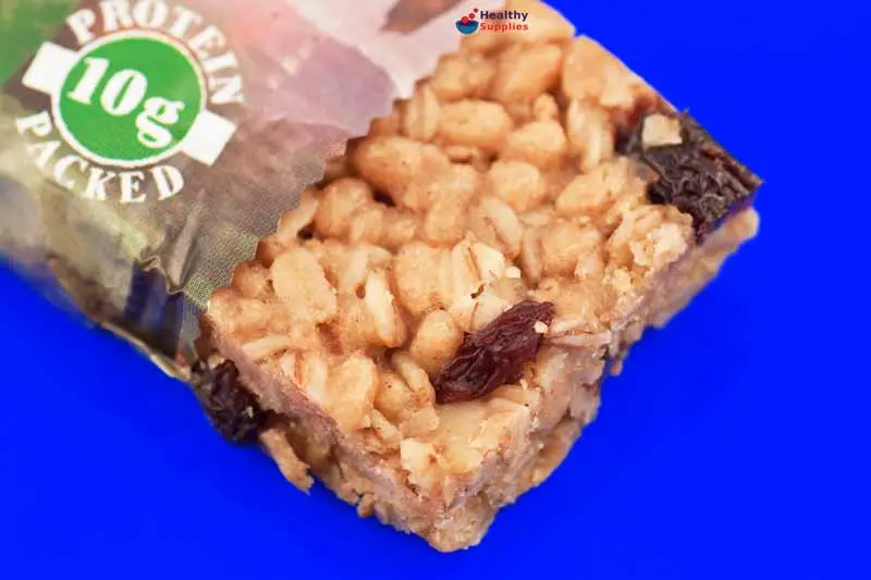 Gluten-Free Oats (24%), Rice Syrup, Soya Protein Crunchies (17%)(Soya Protein, Tapioca Starch, Salt), Vegetable Oils, Raisins (10%) Soya Flour, Raw Cane Sugar, Natural Flavouring, Ground Cinnamon, Ground Nutmeg.